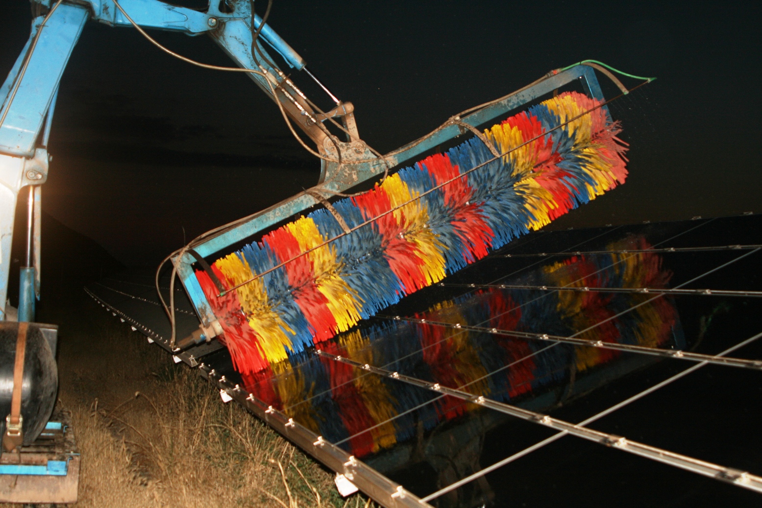 Το μηχάνημα με την ειδική βούρτσα καθαρίζει όλους τους περιβαλλοντικούς ρύπους που έχουν συσσωρευτεί στα Φ/Β Πλαίσια όπως γύρη από άνθη, περιττώματα πουλιών, άλατα, σκόνη κλπ, τα οποία δημιουργούν ένα στρώμα πάνω τους και οδηγούν σε μείωμένη παραγωγή και μόνιμες βλάβες.
